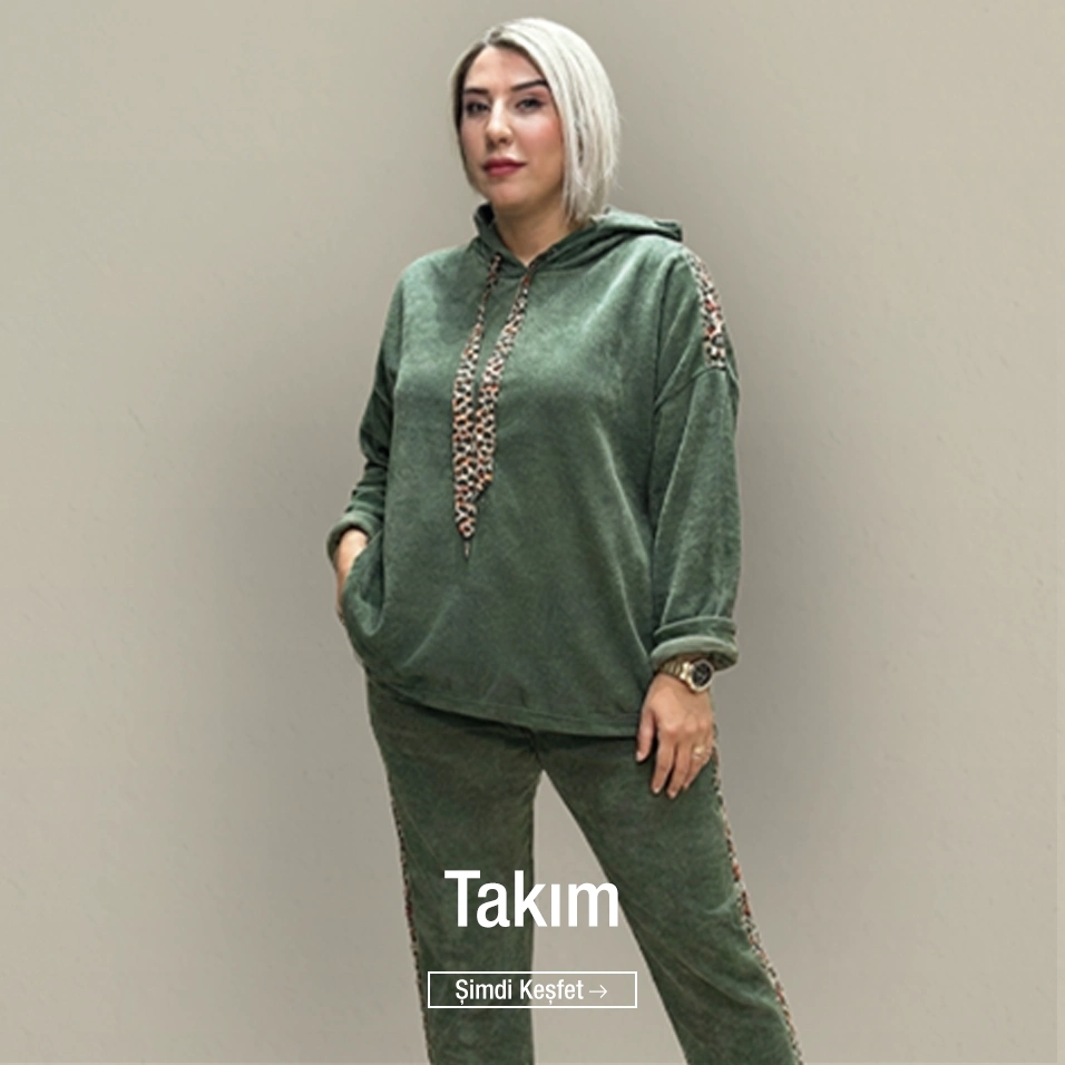 İtalyan Tasarım Gömlek Fular Bluz Takım Haki