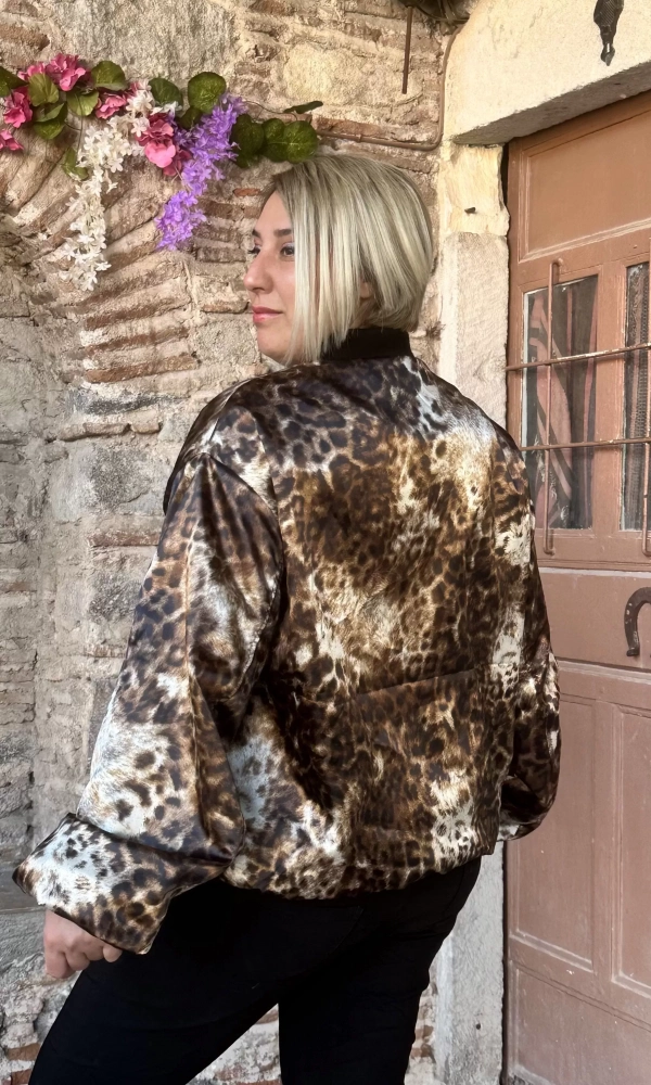 İtalyan Tasarım Sarmaşık Çiçek Kabartmalı Kapitone Kapüşonlu Ceket Acı Kahve