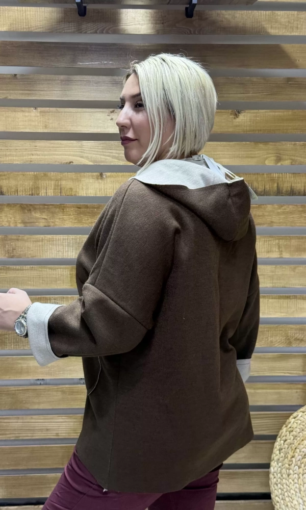 İtalyan Tasarım Kapüşonlu Düz Desen Kap Camel
