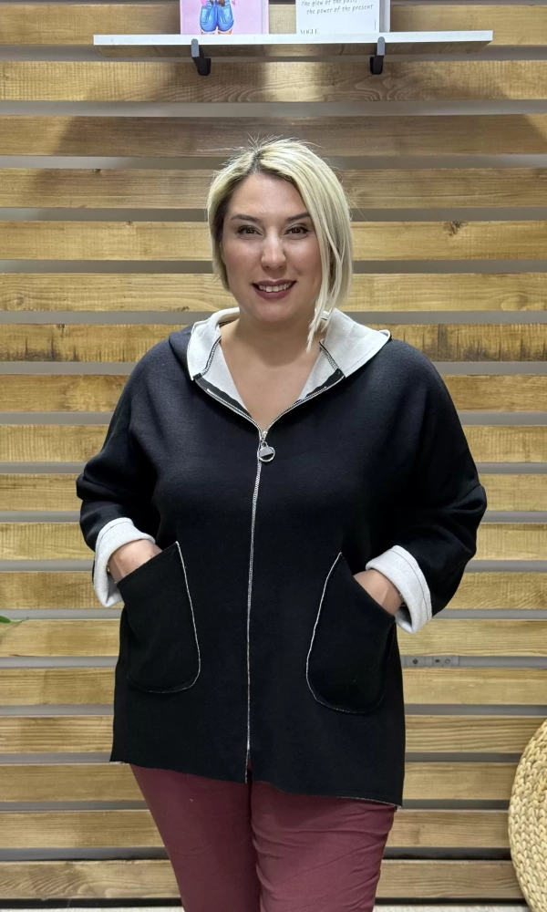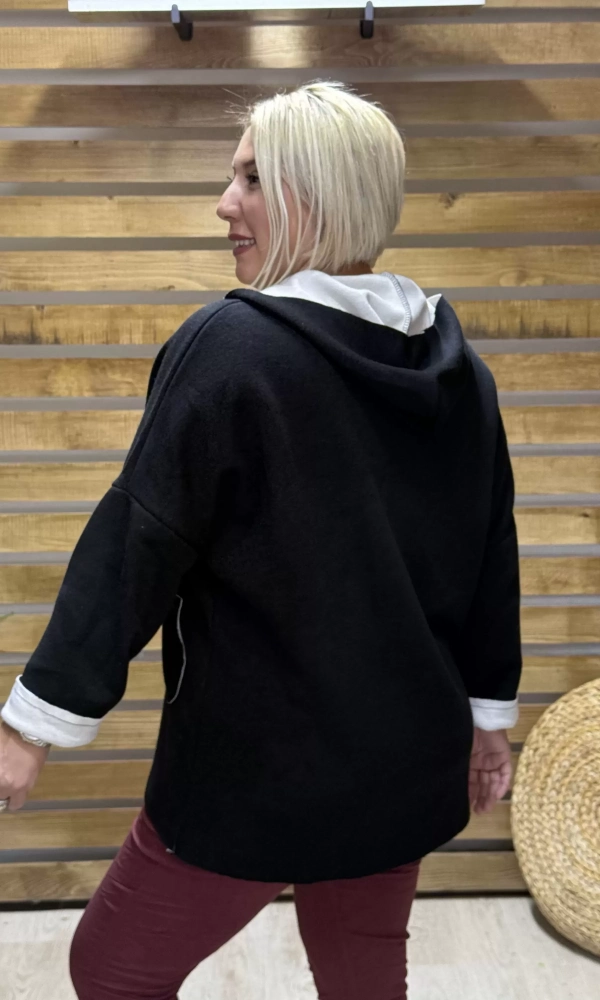 İtalyan Tasarım Kapüşonlu Düz Desen Kap Siyah