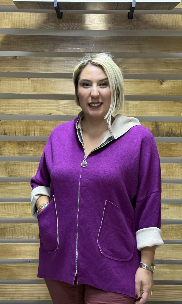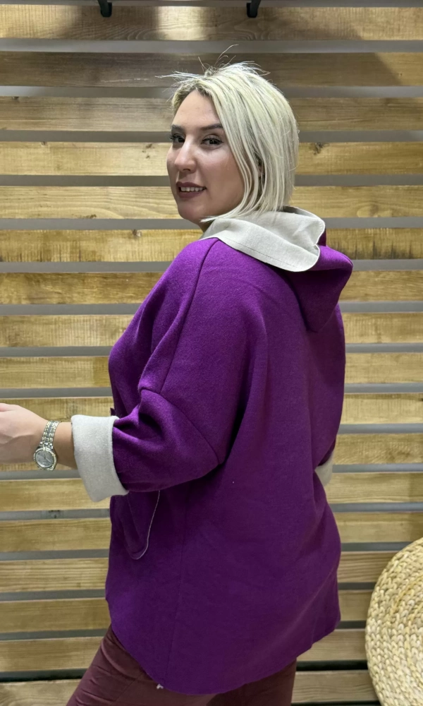 İtalyan Tasarım Kapüşonlu Düz Desen Kap Leylak