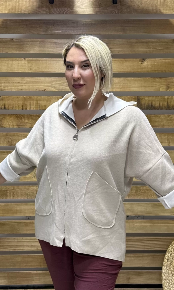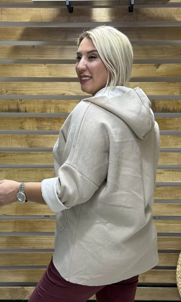 İtalyan Tasarım Kapüşonlu Düz Desen Kap Krem