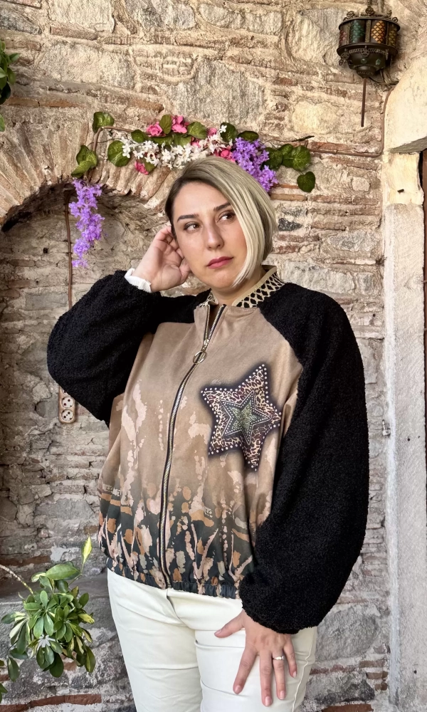 İtalyan Tasarım Kapüşonlu Oversize Kadife Ceket Camel
