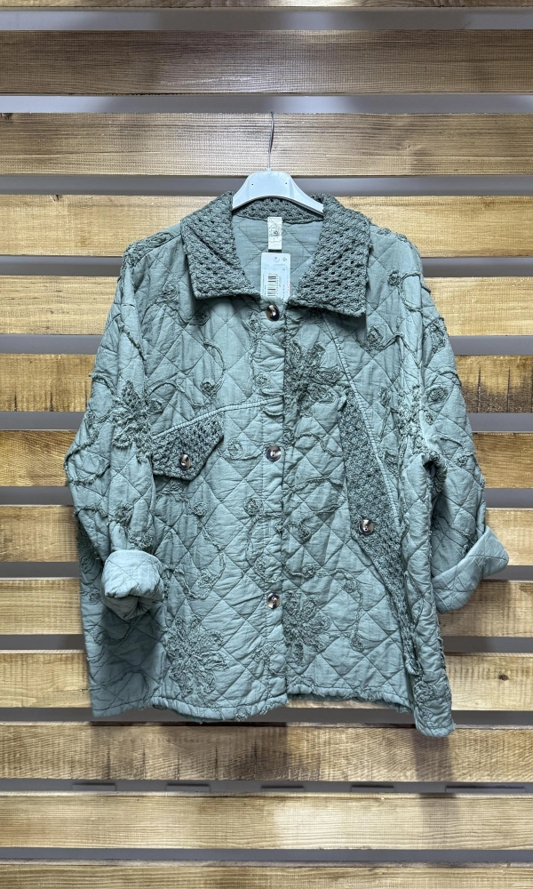 İtalyan Tasarım Kapitone Kabartma Detaylı Ceket Haki