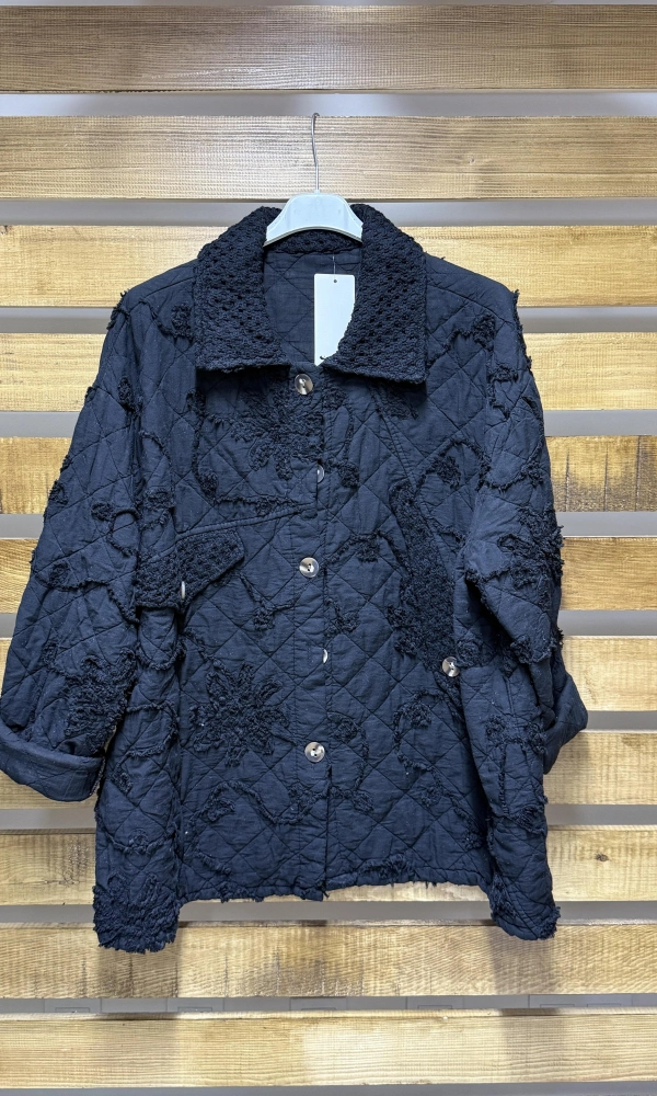 İtalyan Tasarım Kapitone Kabartma Detaylı Ceket Siyah
