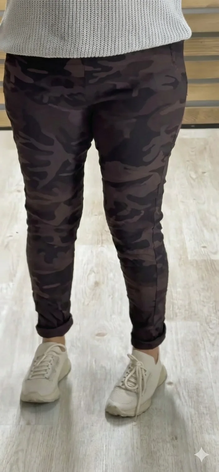 İtalyan Tasarım Full Likralı Kamuflaj Desen Pantolon Kahve