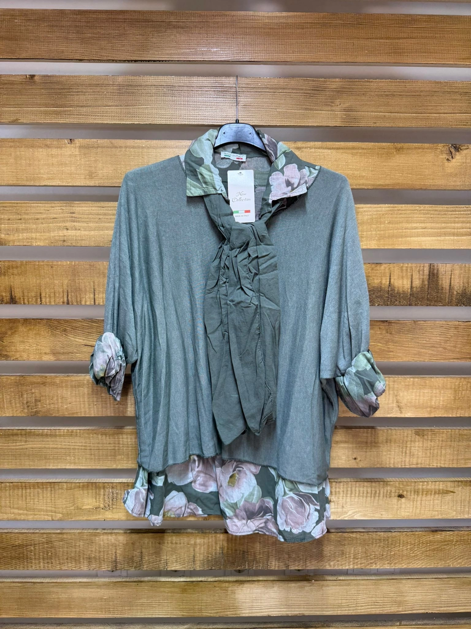 Romantik çiçek deseniyle zarafeti ön plana çıkaran bu takım, İtalyan tasarım detaylarıyla fark yaratıyor. Fular detaylı bluzu ve klasik kesim gömleğiyle hem modern hem de feminen bir tarz sunar.