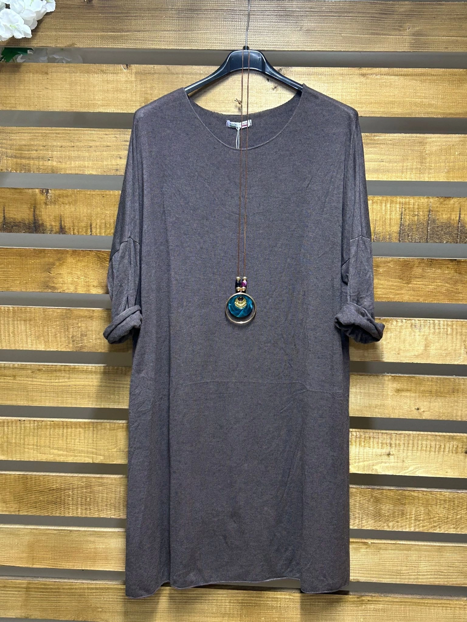 Boyundan takılan kolye detayı, elbiseye zarif bir dokunuş katar ve kombin tamlayıcısı olur.