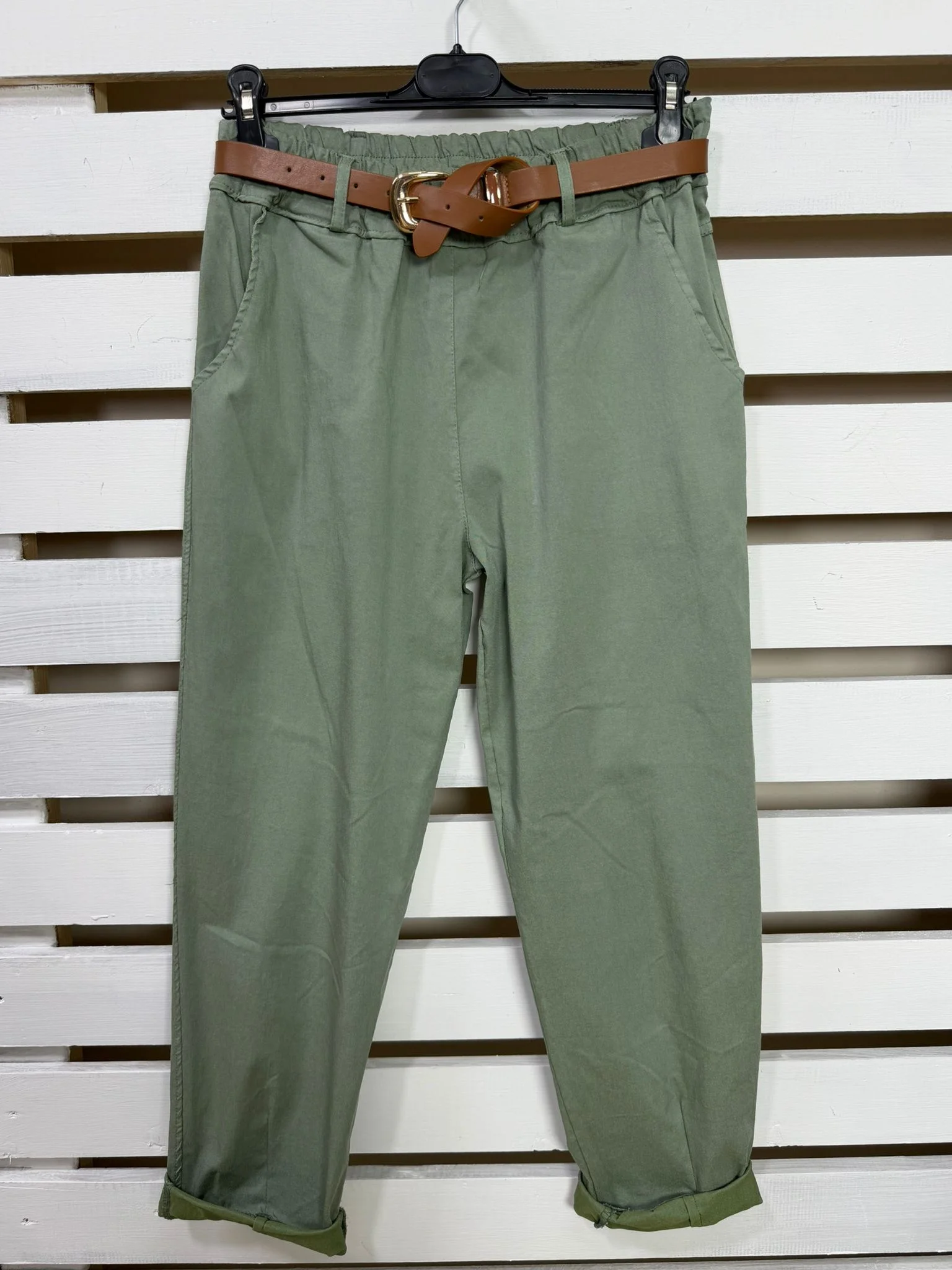 İtalyan Tasarım Havuç Kesim Likralı Kemerli Pantolon Haki