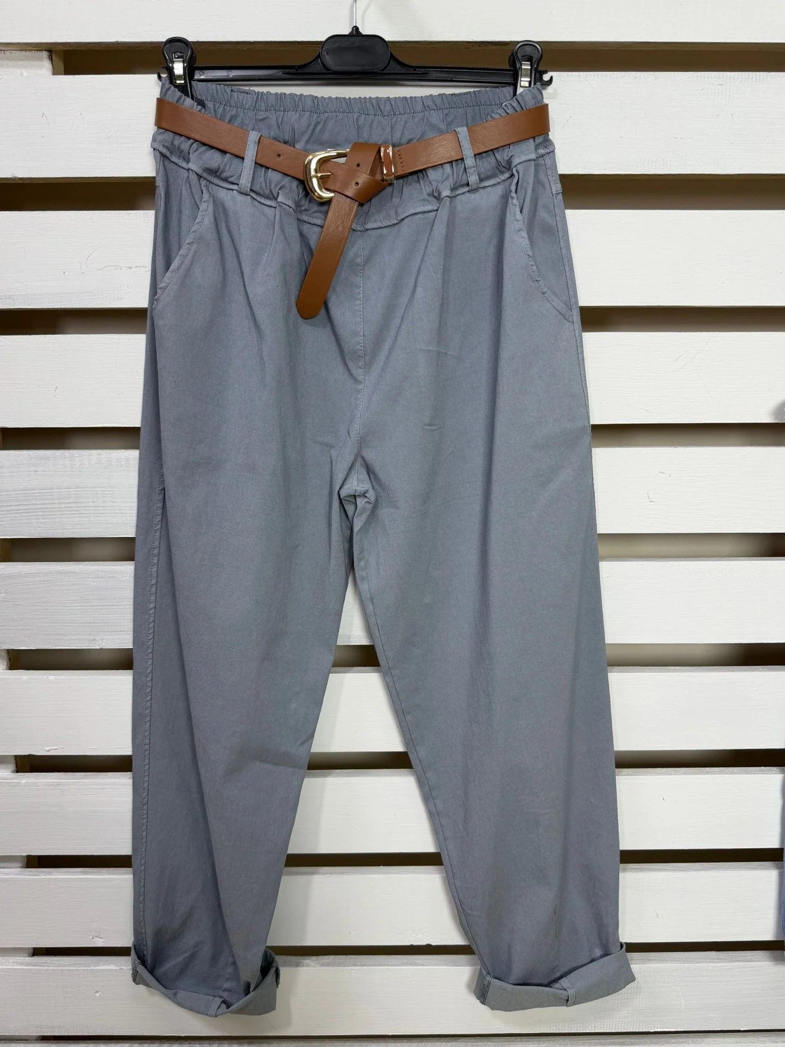 İtalyan Tasarım Havuç Kesim Likralı Kemerli Pantolon Krom