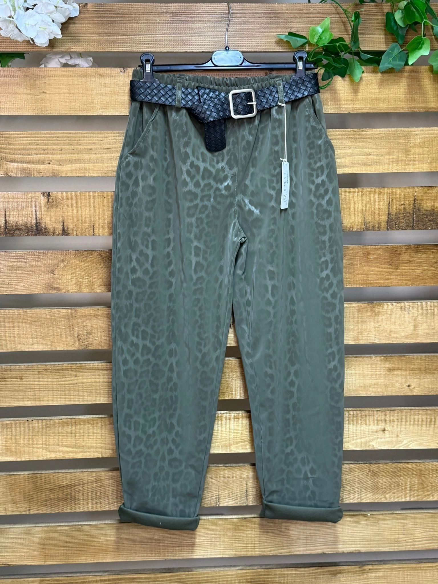 Modern çizgileriyle dikkat çeken bu özel tasarım pantolon, 3D efektli özel kaplama kumaşı sayesinde fark yaratan bir şıklık sunuyor. Likralı yapısı ile rahat hareket imkanı sağlarken, leopar deseni ile cesur ve iddialı bir tarz oluşturur.