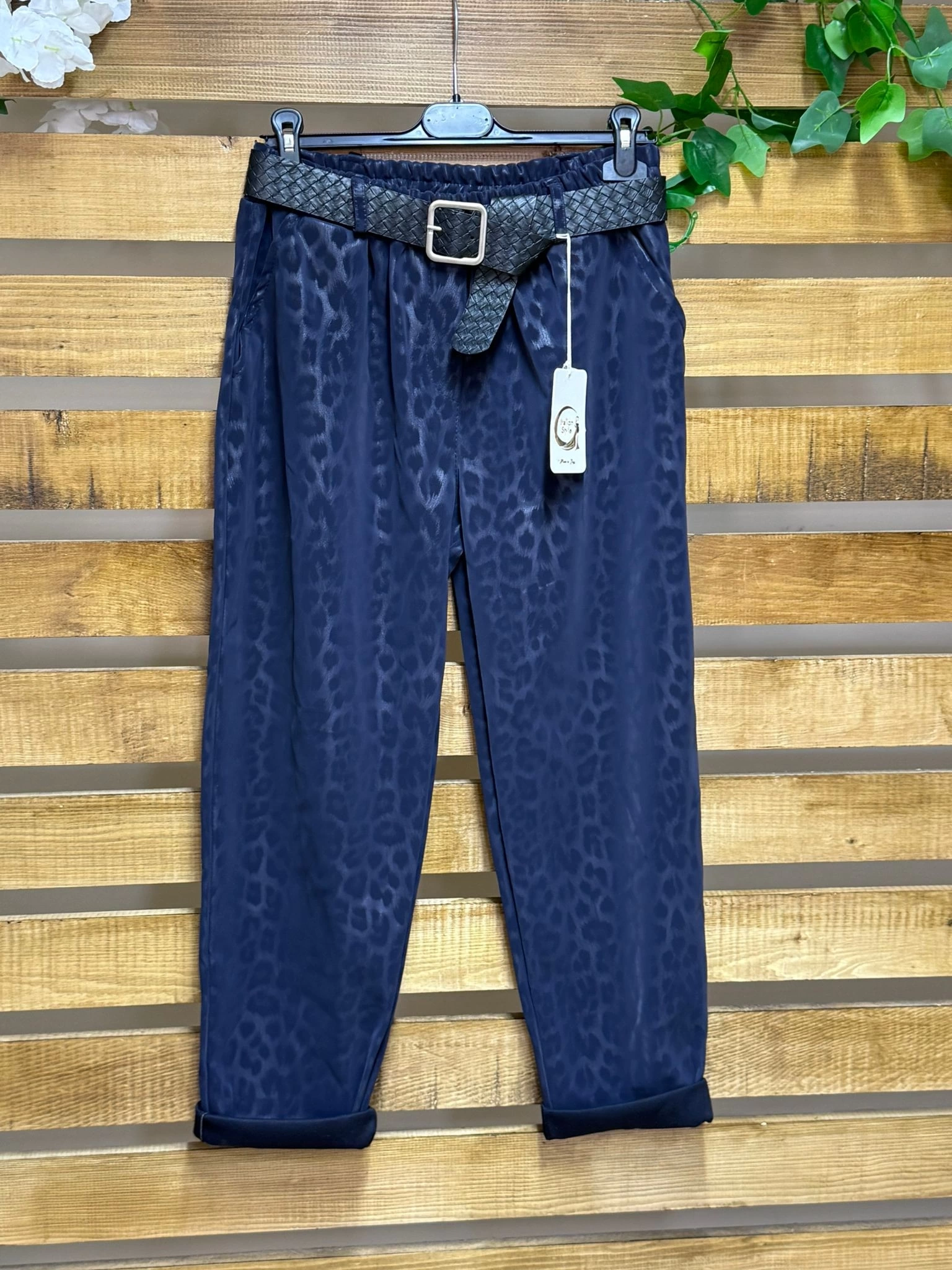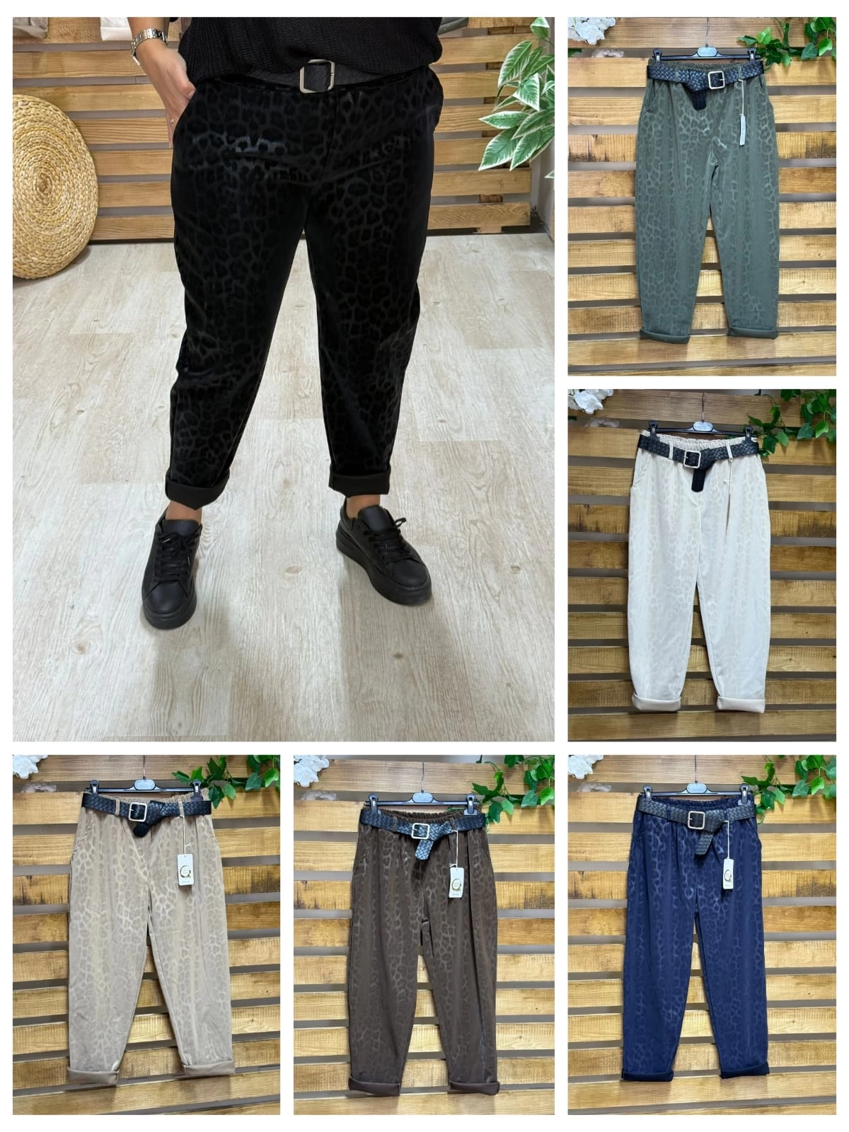 Modern çizgileriyle dikkat çeken bu özel tasarım pantolon, 3D efektli özel kaplama kumaşı sayesinde fark yaratan bir şıklık sunuyor. Likralı yapısı ile rahat hareket imkanı sağlarken, leopar deseni ile cesur ve iddialı bir tarz oluşturur.