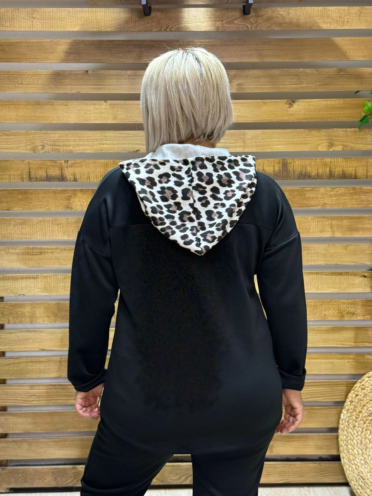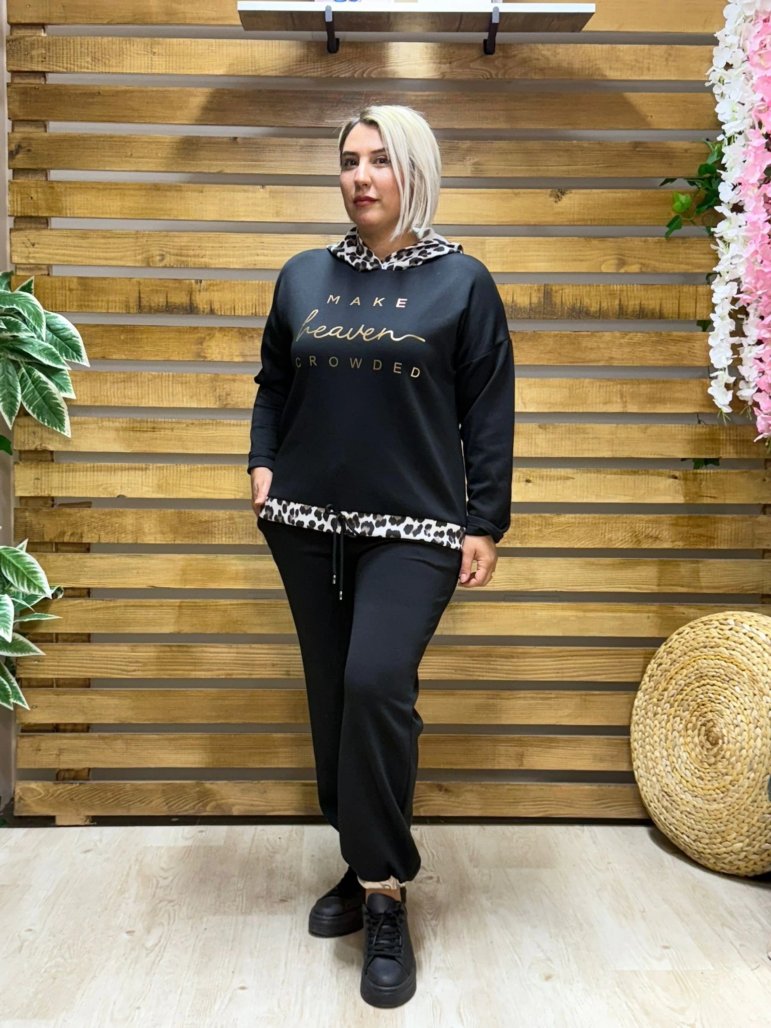 Modern tarzı ve rahat kesimiyle dikkat çeken bu takım, leopar desenin enerjisini zarif bir şekilde yansıtır.