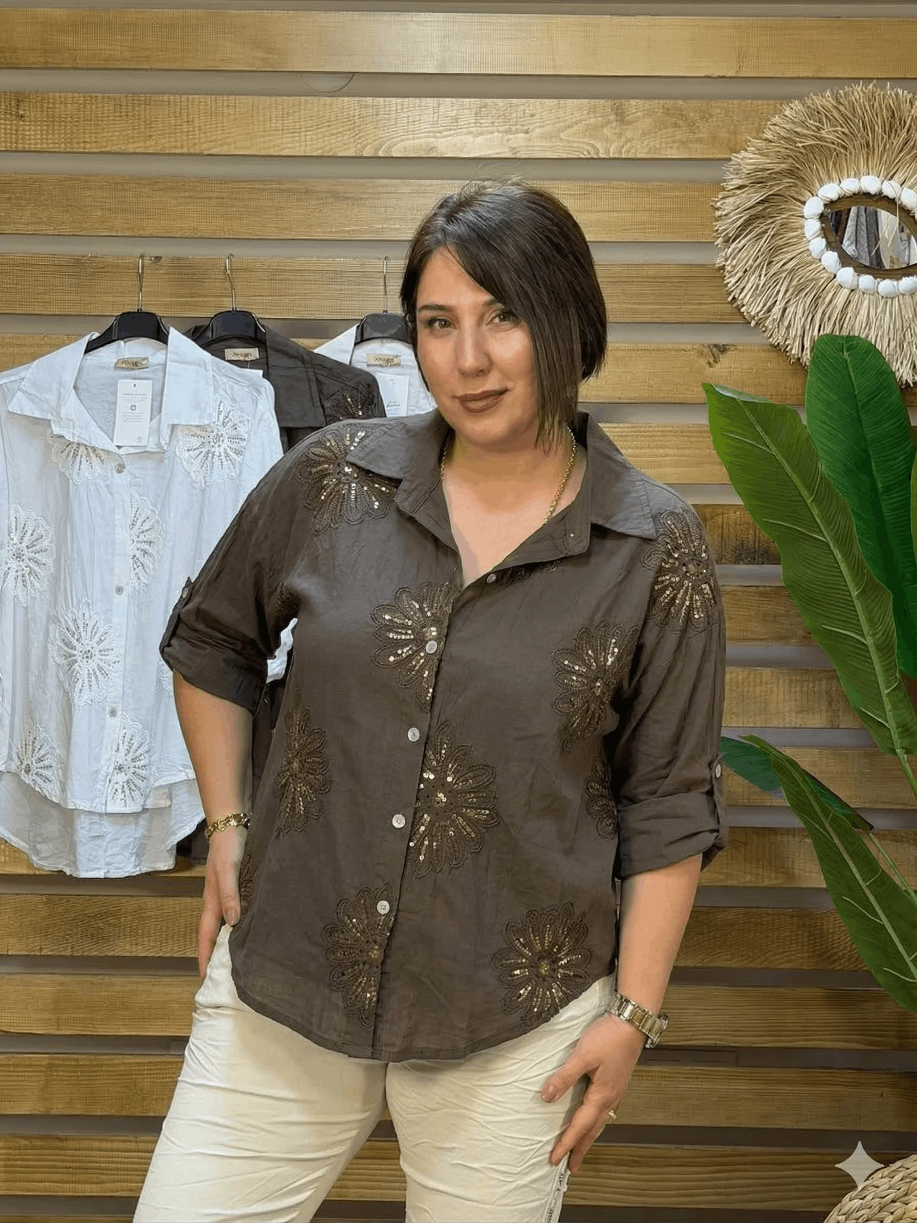 Zarif detaylarıyla göz alıcı bir şıklık sunan İtalyan Tasarım Nakış ve Payet İşlemeli Gömlek, klasik gömlek formuna modern ve ışıltılı bir dokunuş katıyor. Özenle işlenmiş nakış ve payet detayları sayesinde sade kombinlerde bile dikkat çekici bir görünüm elde etmenizi sağlar.