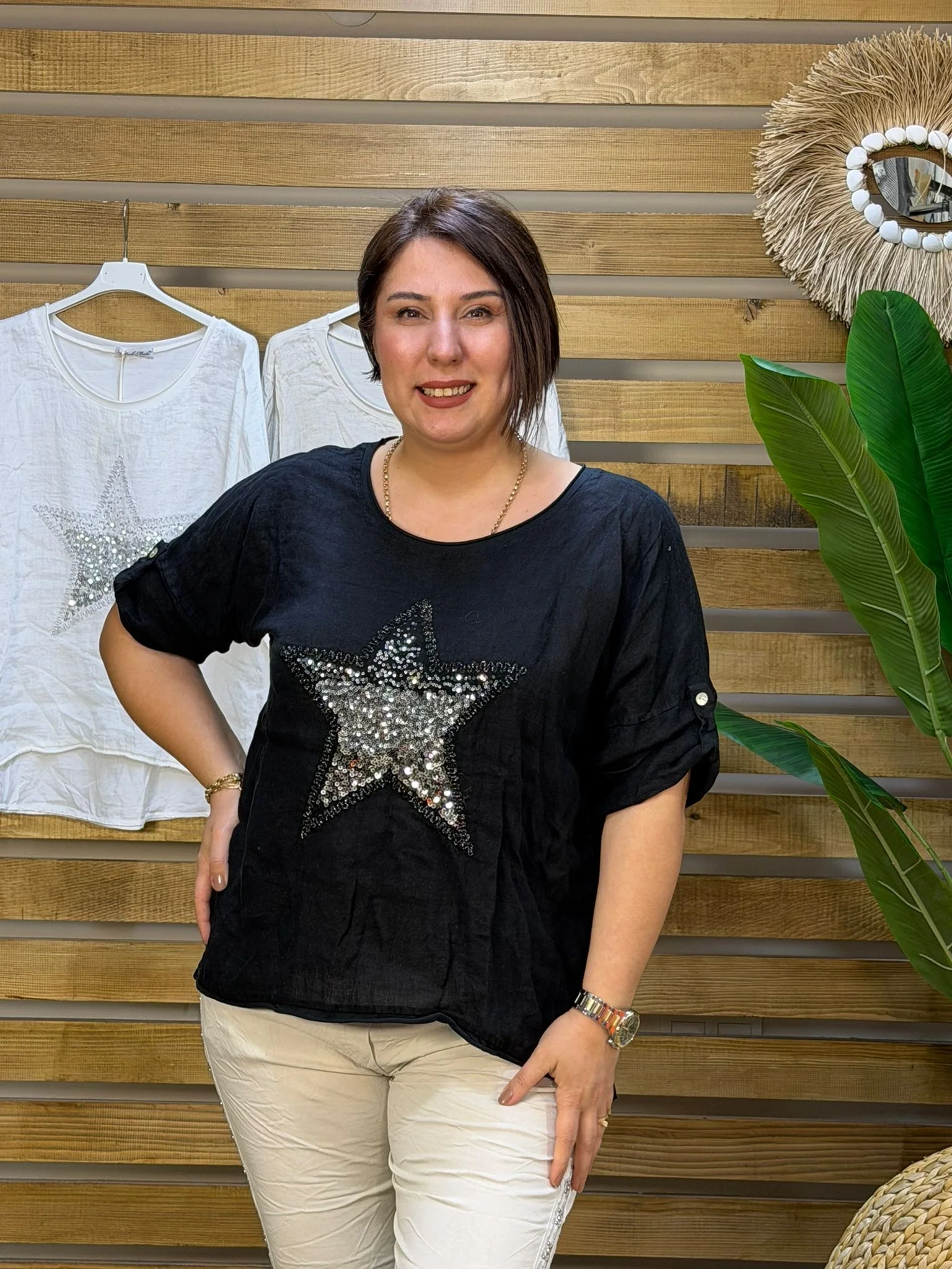 Ön kısmındaki kabartma detaylar, bluza modern ve özgün bir görünüm kazandırırken düz kombinlere bile karakter katar. Hafif yapısı sayesinde özellikle sıcak havalarda ideal bir tercih olup, jean, keten pantolon veya eteklerle kolayca kombinlenebilir.