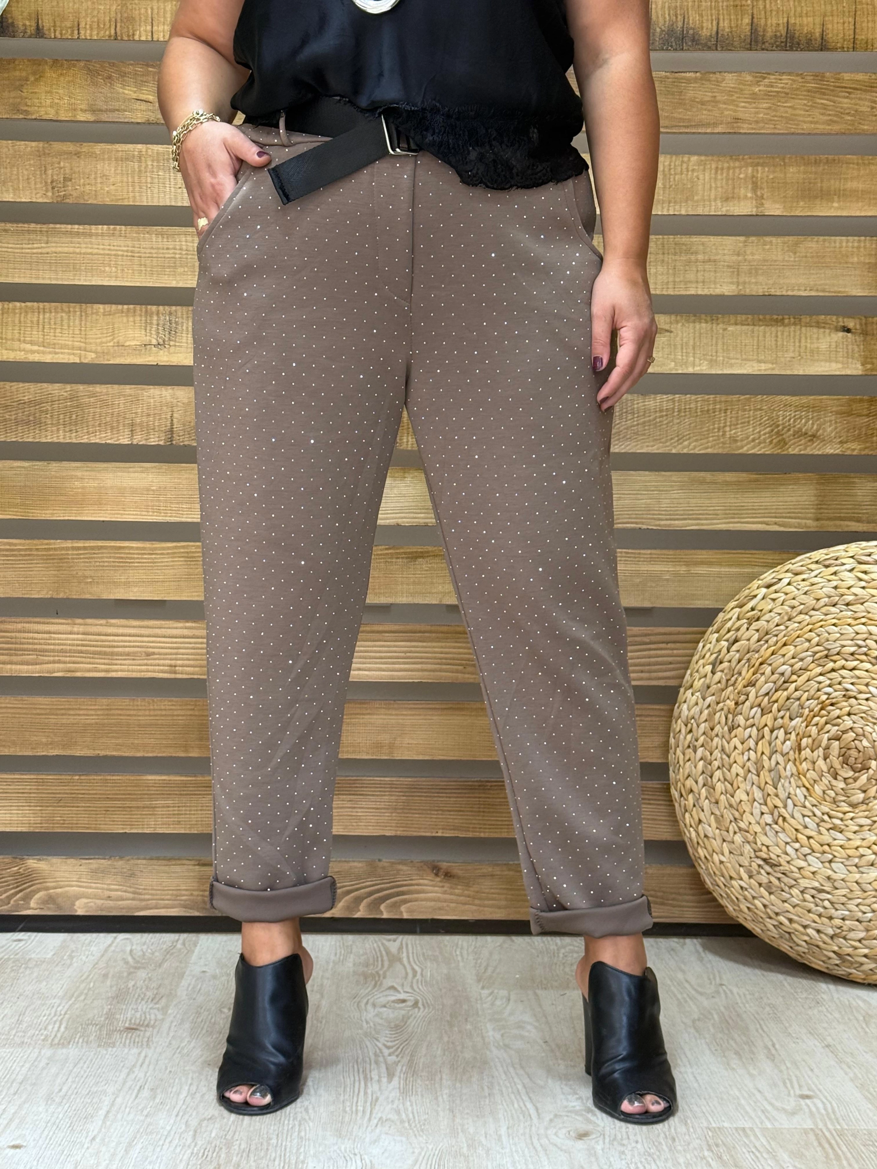 Şıklığı ve rahatlığı bir arada sunan bu özel tasarım pantolon, zarif taş detayları ile göz alıcı bir stil yaratır. Haki rengin sofistike duruşu sayesinde hem günlük hayatta hem de özel kombinlerde kolayca kullanılabilir.