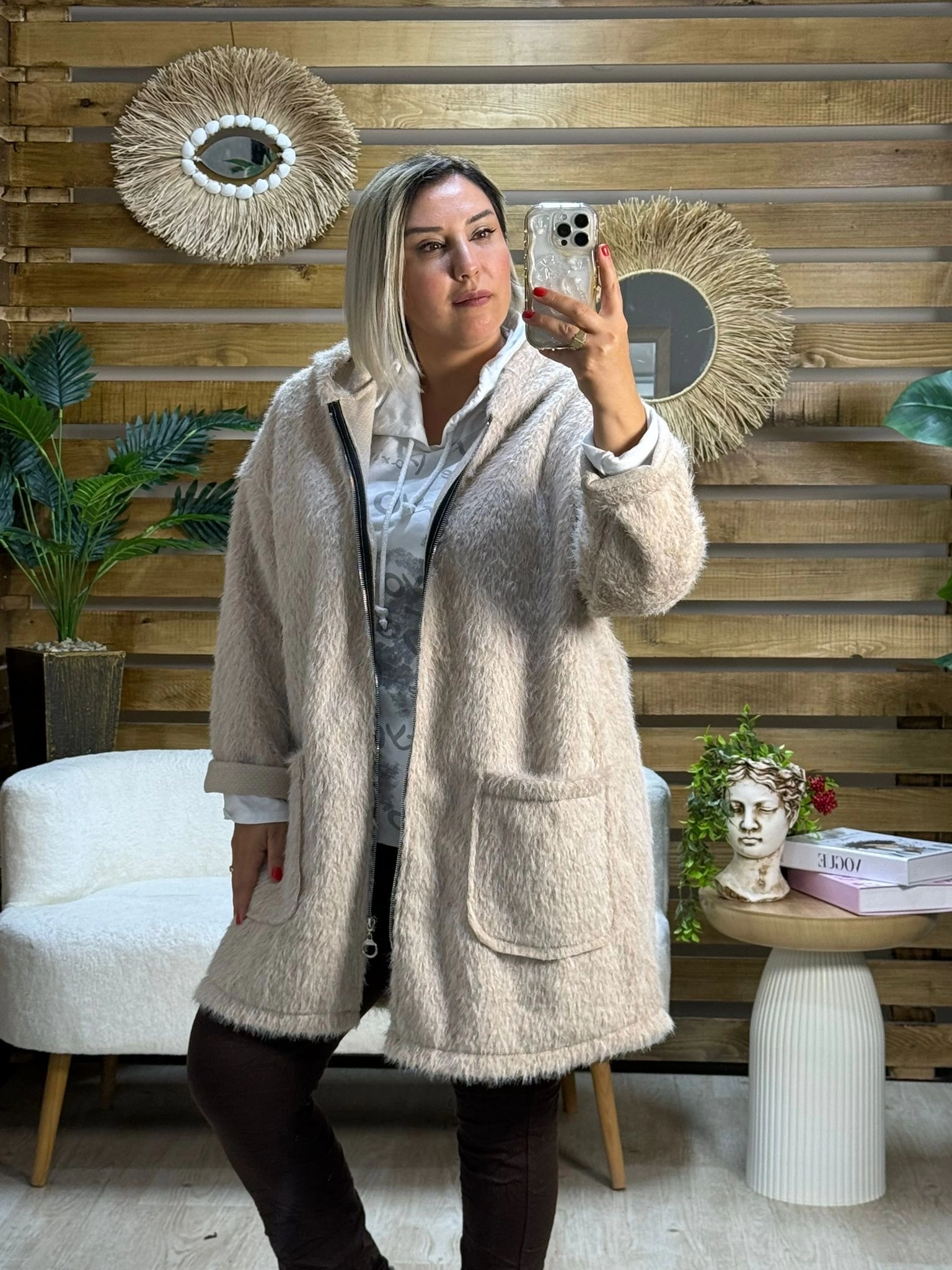 Kalın ve kaliteli keçe kumaşı sayesinde sıcak tutar, aynı zamanda hafif yapısıyla gün boyu rahat kullanım sağlar. Uzun kesimi, vücut hatlarını zarifçe sararken, fermuarlı tasarımı pratik bir kullanım sunar.
