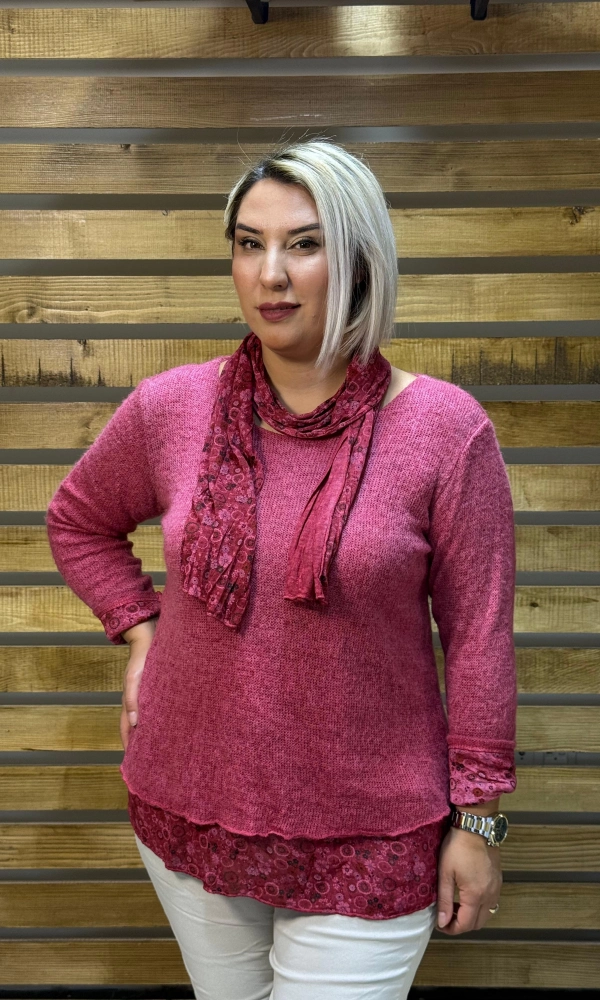 İtalyan Tasarım Atlet Fular Yün Triko Takım Bordo