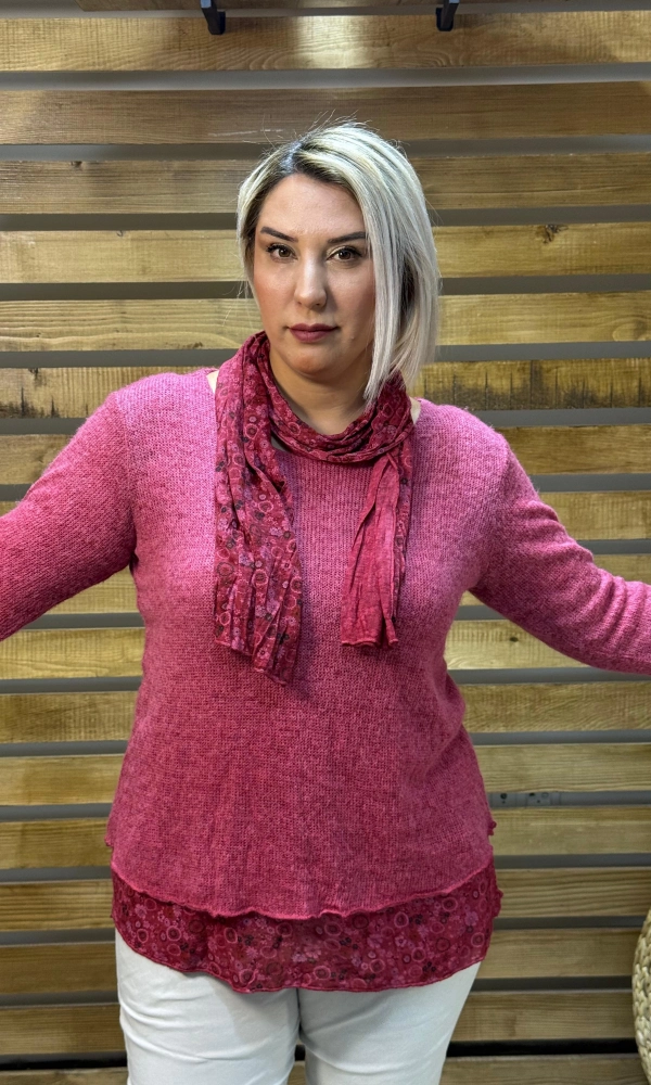 İtalyan Tasarım Yuvarlak Yaka Hamur Triko Bluz Mor