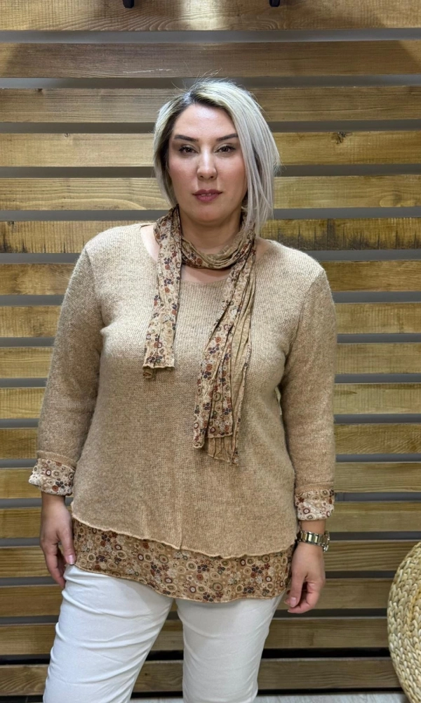 İtalyan Tasarım Atlet Fular Yün Triko Takım Cappuccino
