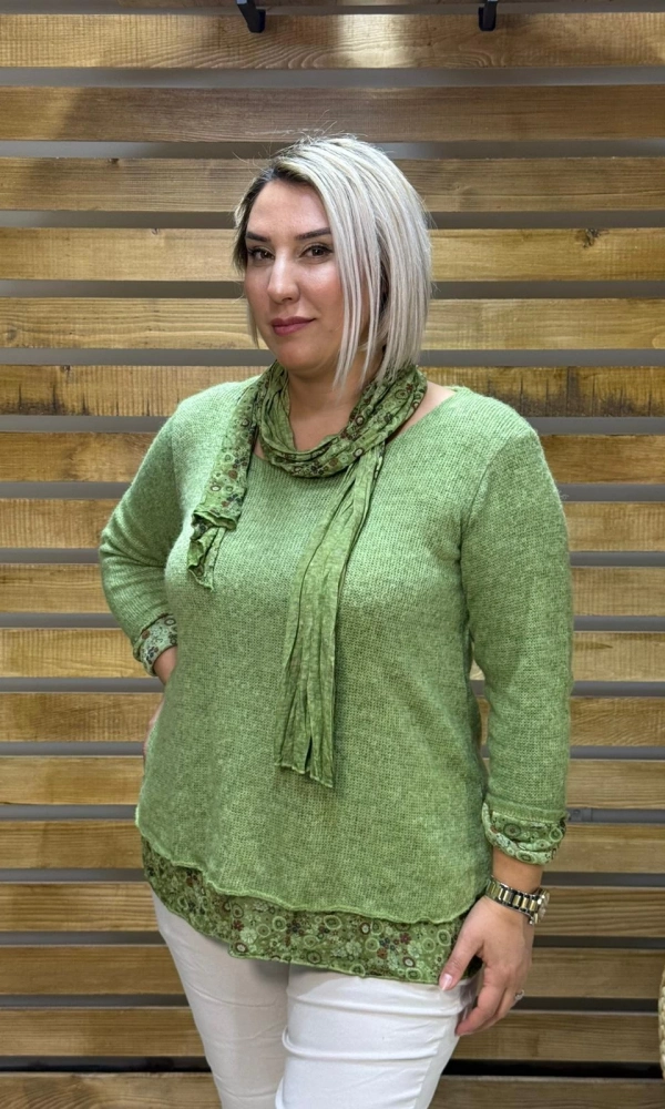 İtalyan Tasarım Yuvarlak Yaka Hamur Triko Bluz Yağ Yeşil