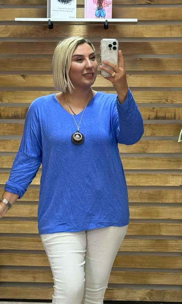 İtalyan Tasarım Merserize V Yaka Bluz Lacivert