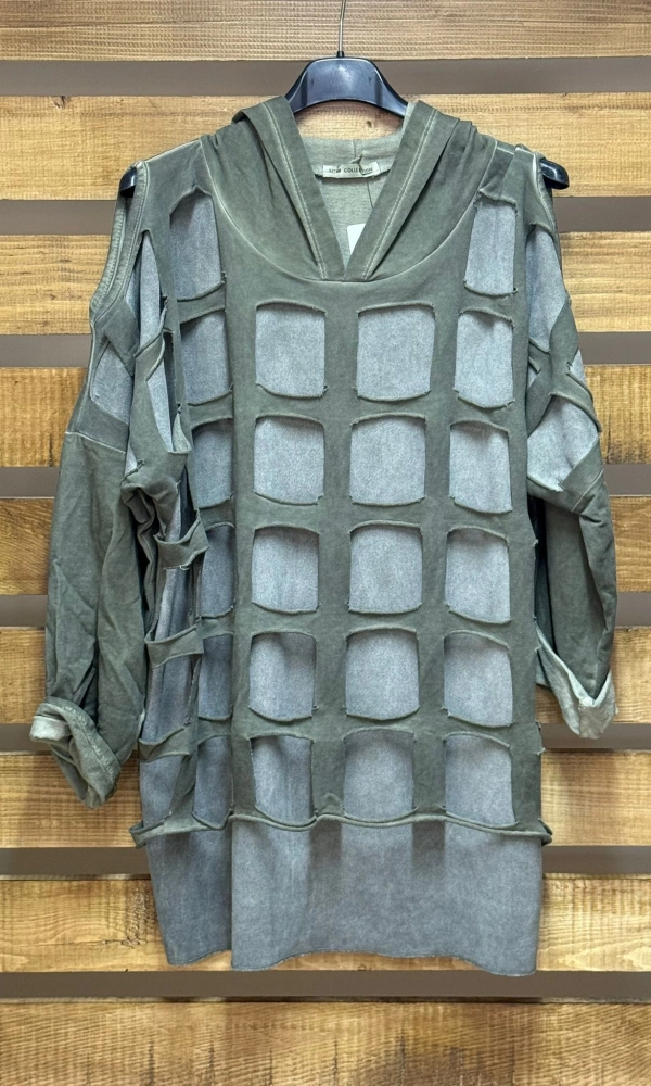 İtalyan Tasarım Lazer Kesim Kapüşonlu Sweatshirt Bluz Haki