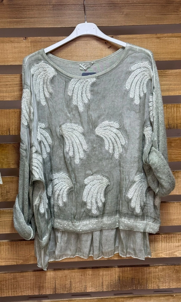 İtalyan Tasarım Pul İşlemeli Yün Ve Atlet Bluz Haki