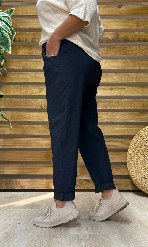 İtalyan Düz Desen Tokalı Kemerli Pantolon Lacivert