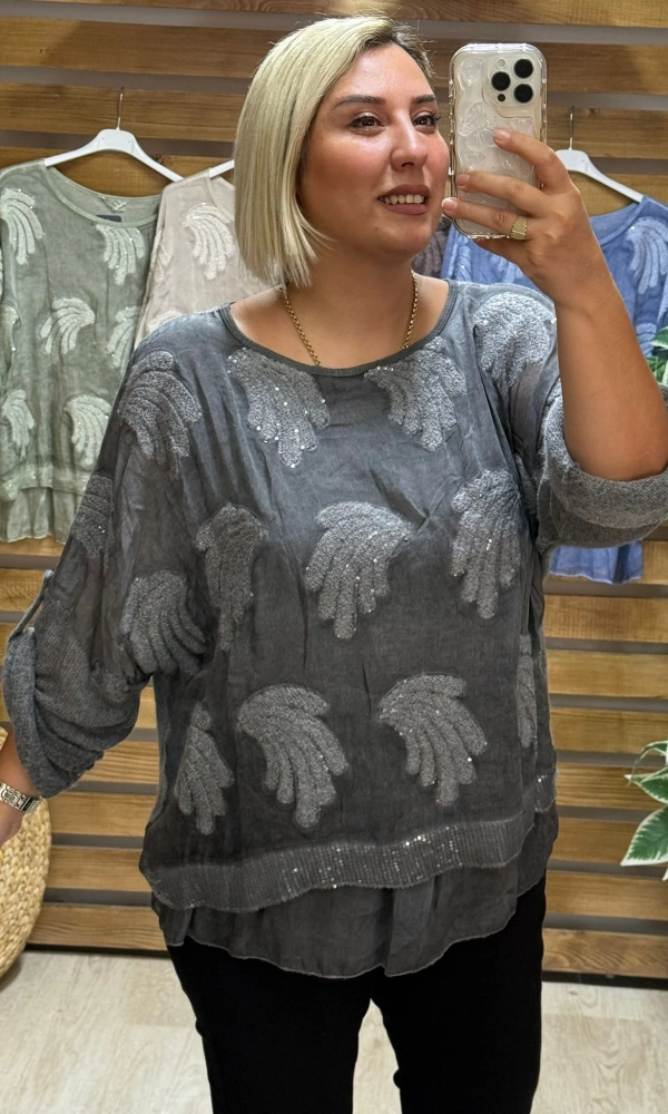 İtalyan Tasarım Pul İşlemeli Yün Ve Atlet Bluz Antrasit